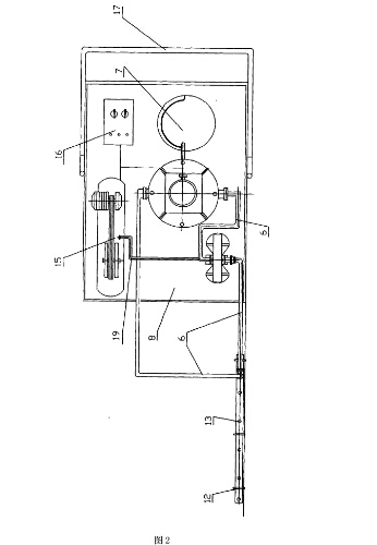 4.2啟動(dòng)空氣壓縮機(jī)15,待壓縮機(jī)儲(chǔ)氣罐壓力達(dá)到0.6Mpa時(shí),打開(kāi)空氣壓縮機(jī)的出氣閥門(mén)經(jīng)高壓氣管19給氣動(dòng)隔膜泵4送氣。